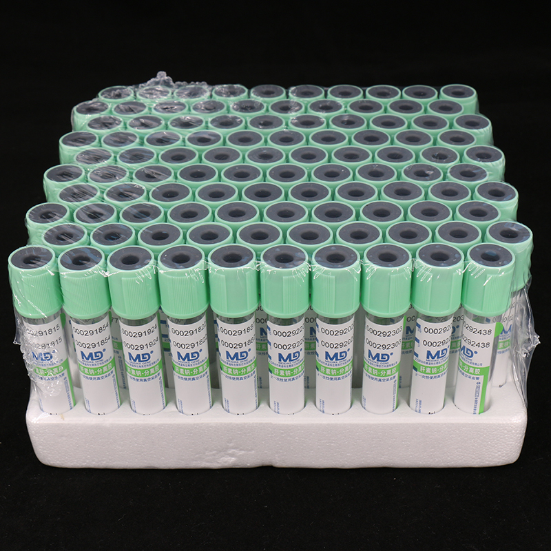 产品材质构成:丁基胶塞+PP管帽+PET试管+肝素钠抗凝剂+分离胶